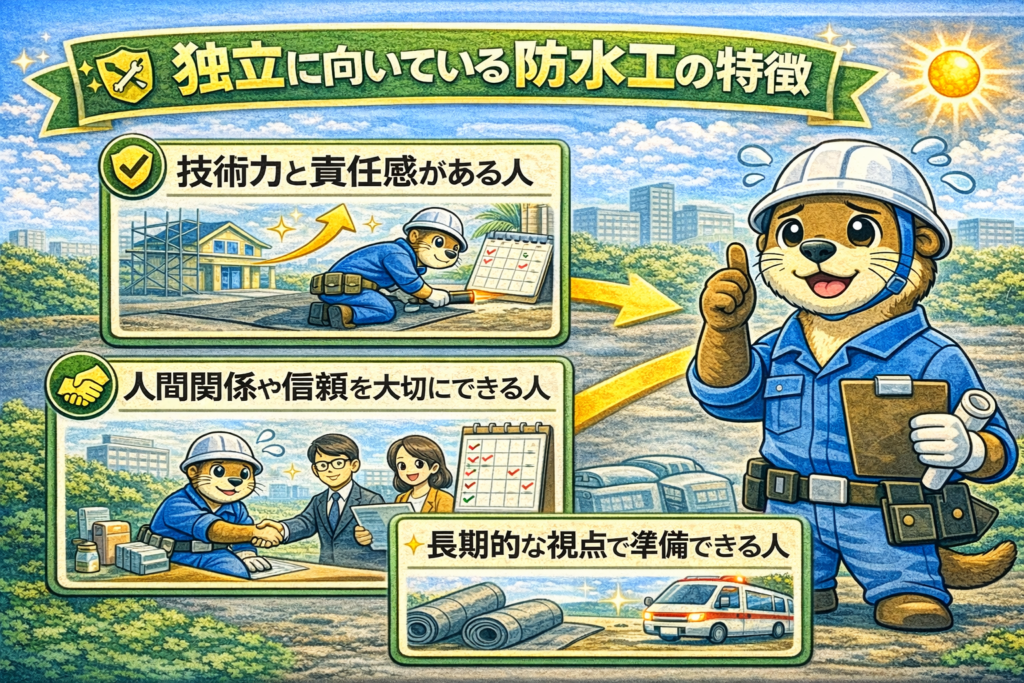 独立の成功は、技術だけでは決まりません。防水業界では、信頼と継続取引が収入の土台になります。
