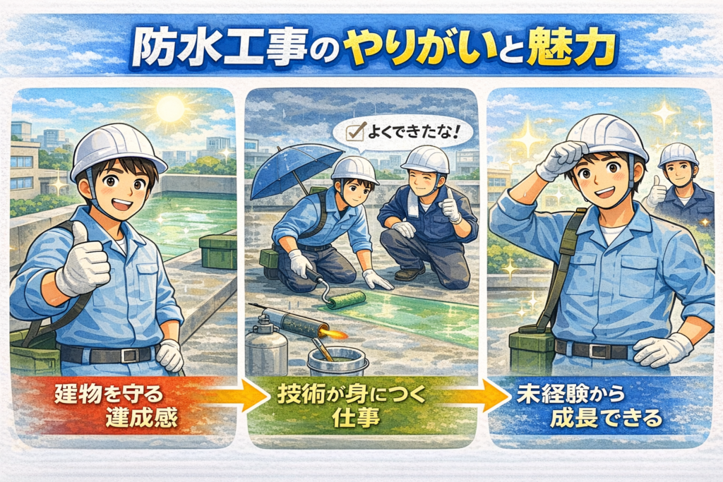 防水工事の仕事を知りたい方や、業界に興味がある方にとって、働くイメージをつかめる内容です。